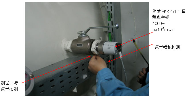 當(dāng)噴氦氣后氦質(zhì)譜檢漏儀顯示漏率值超過設(shè)定值,并且有明顯的報(bào)警聲音,表明此處有漏點(diǎn),然后在漏電處做標(biāo)記,在進(jìn)行其他部位的檢漏。
