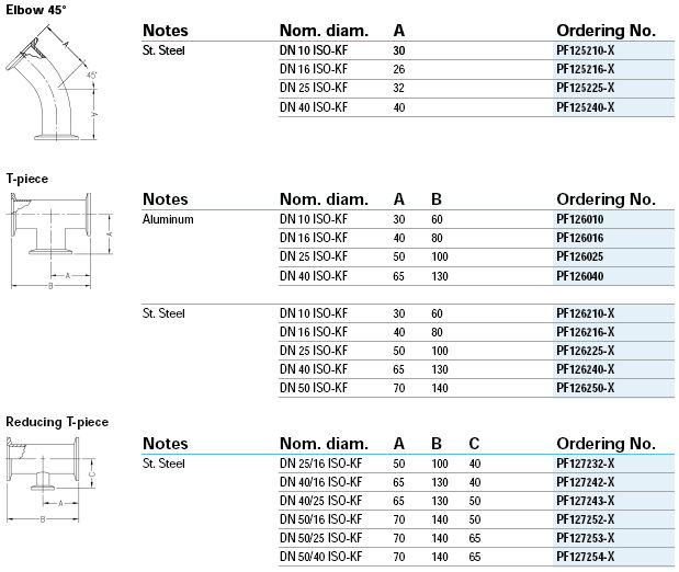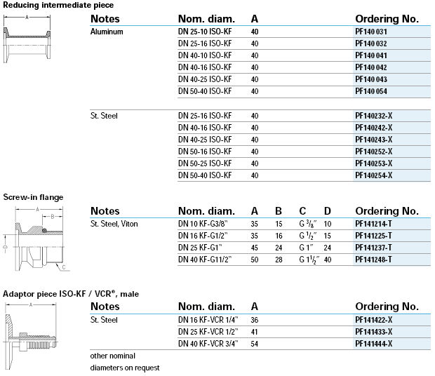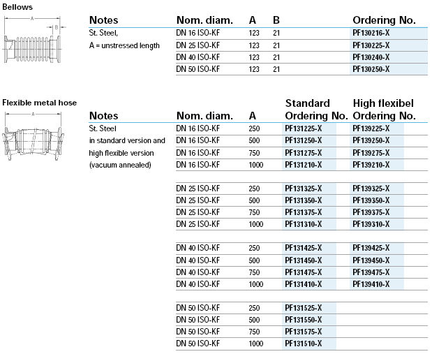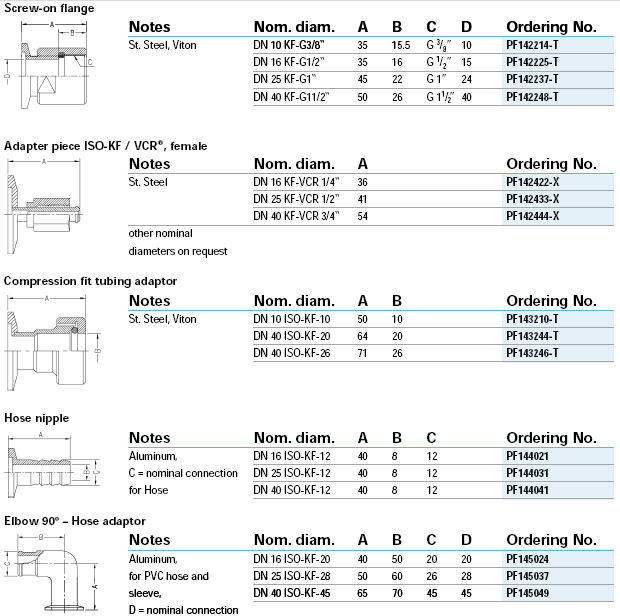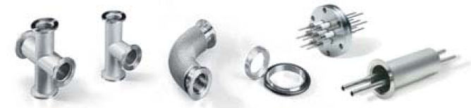 1. 連接零部件 2. 密封件 3. 法蘭 4. 管件 5. 波紋管 6. 轉接頭 7. ISO-KF, ISO-K, CF